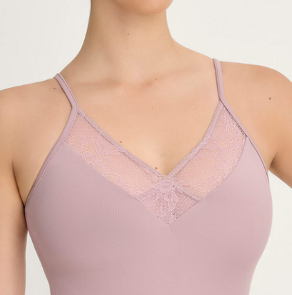 Ce justaucorps se distingue par ses détails en dentelle délicate, offrant une touche de raffinement.