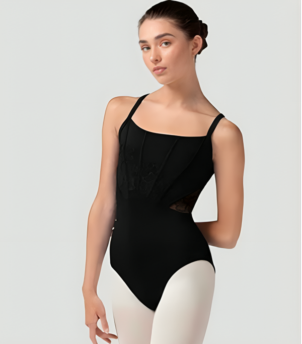 Le justaucorps de danse Mia à dos en résille florale est une pièce incontournable de notre magasin de danse. Il est conçu pour les danseuses qui recherchent à la fois l'élégance et la performance. Ce justaucorps se distingue par ses délicates bretelles fines, un corset finement brodé et un dos en résille douce et transparente.