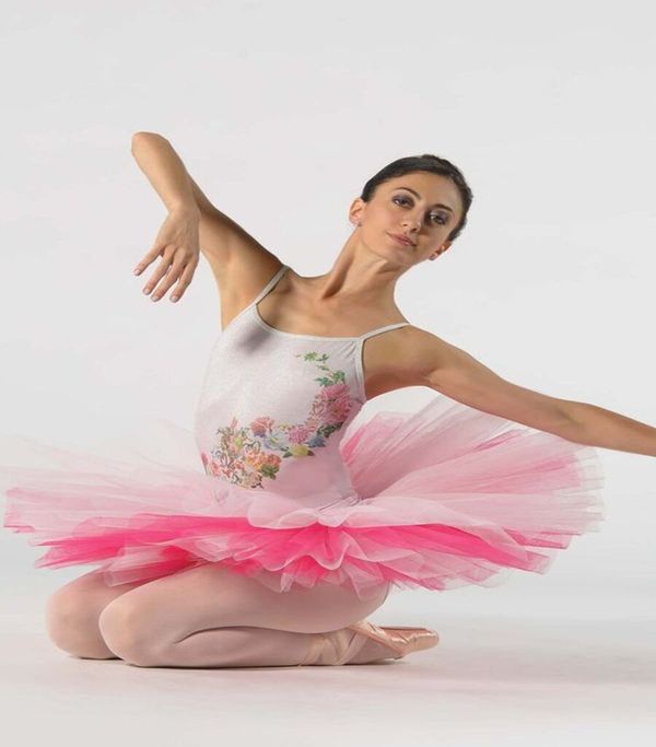 Son design unique se distingue par un motif floral délicat qui cascade diagonalement sur le buste, créant une silhouette élégante et printanière. Les fines bretelles et l'encolure droite soulignent le port de tête, tandis que la coupe classique assure un maintien irréprochable durant les exercices à la barre ou au milieu.