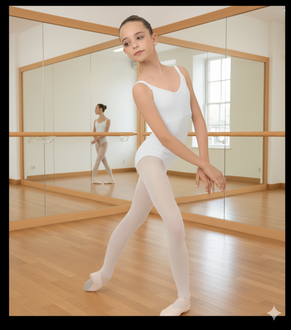 Les surpiqûres avant sont stratégiquement placées pour mettre en valeur la silhouette de la danseuse.