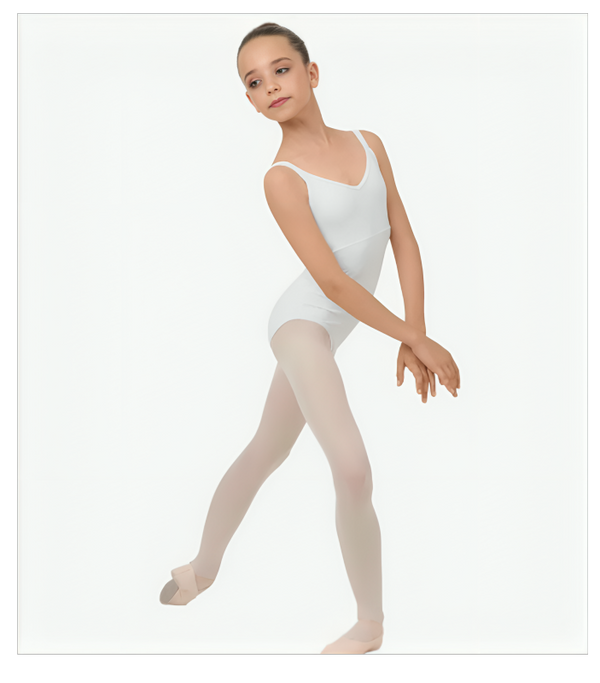 Ce magnifique justaucorps de danse blanc Repetto, à double bretelles, présente un décolleté en V flatteur à l'avant et un grand décolleté dans le dos.
